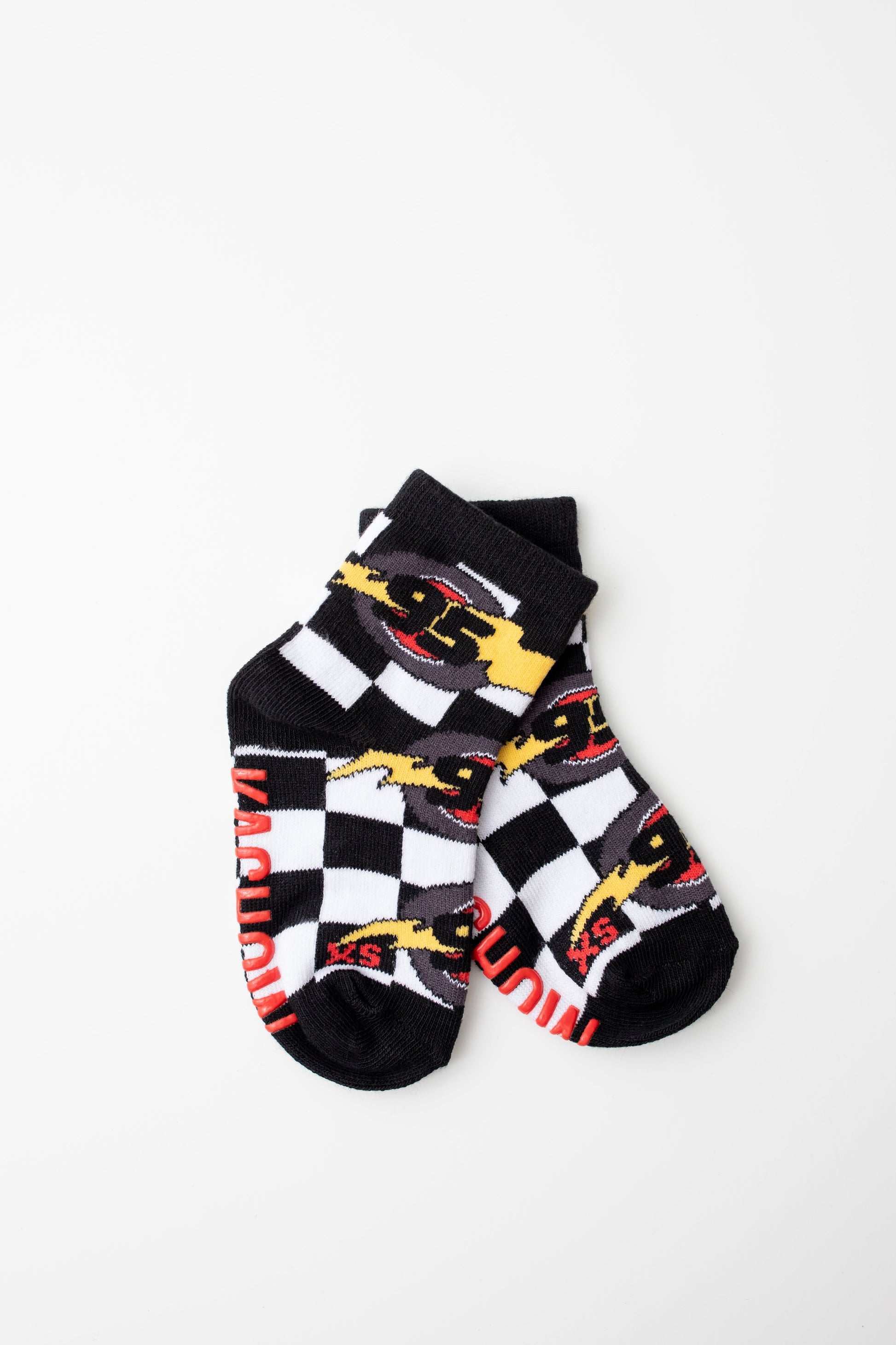 Sizes Infant, Extra Small, Small, Medium have logo grips on the bottom of the feet large have a stitched logo on the bottom of the feet.
